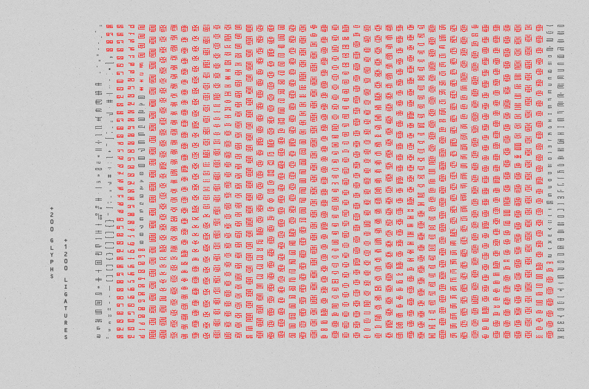 Nihon首次出現(xiàn)在HfG Rundgang 2014展會上,反響非常熱烈。我的目標是將Nihon字體擴展到一個有更多字形和連字的家族。到目前為止,Nihon提供了4種字體設計,每種字體有6個權重,所有字體的連字和字形總數(shù)超過30000個。