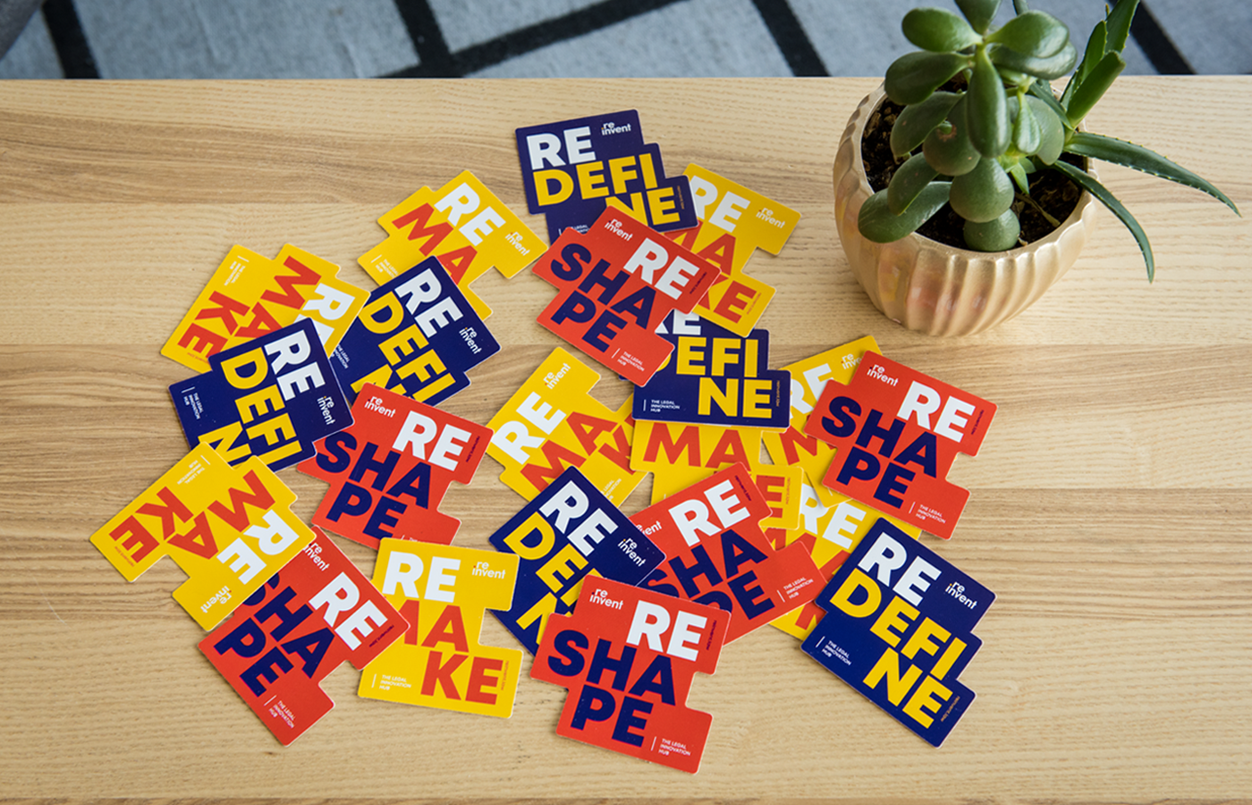 印刷材料每天都會提醒人們重新思考,改變和創(chuàng)新。 所有消息均以“ re”開頭,這是律所標(biāo)志設(shè)計(jì)的基礎(chǔ)。