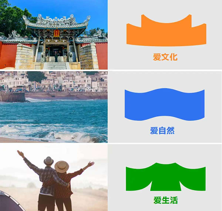 綠色象征生命、和諧與希望,代表東山島居民的熱情好客與社區(qū)的凝聚力。擁抱的造型強化了“大愛”的情感表達,傳遞出對生活的熱愛。