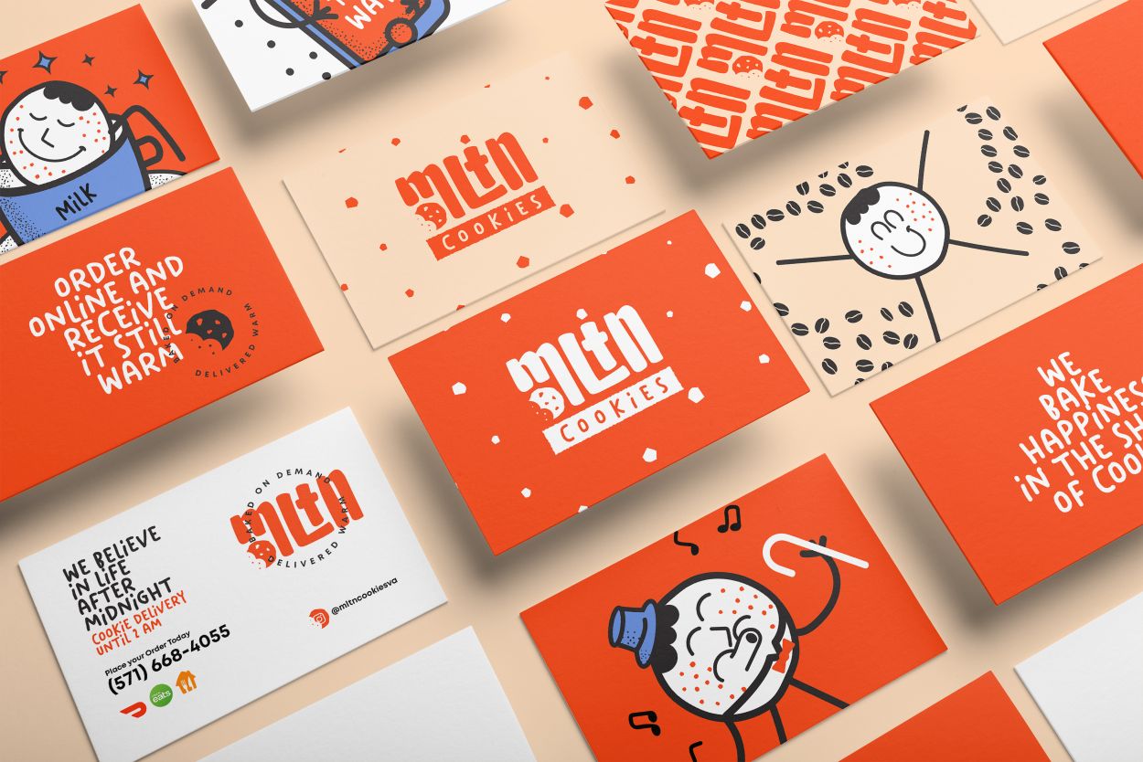 Cookie送貨業(yè)務(wù)品牌形象設(shè)計賞析:考慮到這一點(diǎn),我們決定開發(fā)一個以插圖為導(dǎo)向的品牌項(xiàng)目。在這些類型的項(xiàng)目中,插圖和輔助圖形負(fù)責(zé)傳達(dá)品牌的理念和感受。在這種情況下,我們想要一個易于接受、友好和經(jīng)典的品牌。我想給這個品牌一個經(jīng)典的基調(diào),但把它留在非常現(xiàn)代的應(yīng)用程序中。為此,我們在與品牌及其提案相關(guān)的幾個動作中展示了一個代表 cookie 的IP角色設(shè)計。經(jīng)典設(shè)計風(fēng)格是當(dāng)今品牌的趨勢,甚至出現(xiàn)在他們的情緒板上。所以我相信這是正確的選擇。