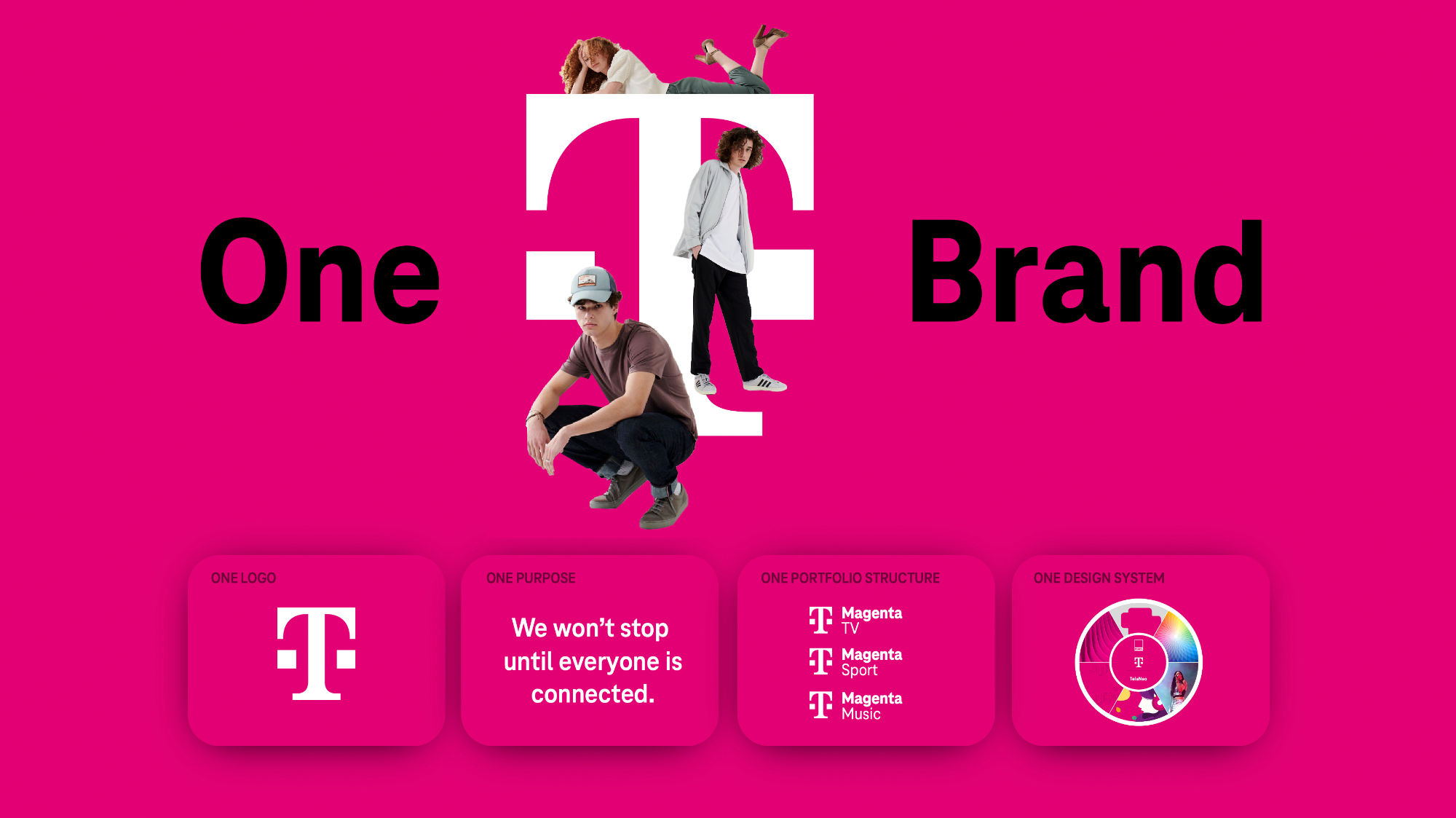 T標(biāo)志,無(wú)論是兩位數(shù)還是四位數(shù)字,都是一個(gè)強(qiáng)烈的標(biāo)志。一個(gè)更強(qiáng)大、更有價(jià)值的 Telekom 品牌資產(chǎn)是洋紅色。有趣的是,多年來(lái),這種視覺(jué)核心元素也以產(chǎn)品名稱(chēng)的形式出現(xiàn)在語(yǔ)言層面,見(jiàn) MagentaTV 等。