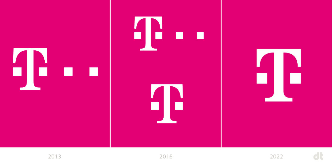 同時(shí),以Digit-T-Digit的形式全球轉(zhuǎn)換為T(mén)標(biāo)志,作為再次調(diào)整形式的機(jī)會(huì)。曲線(xiàn)已經(jīng)過(guò)修改,T 字的頂部、莖和腳已經(jīng)得到加強(qiáng)(見(jiàn)插圖)??傮w而言,根據(jù)意圖,這些更改導(dǎo)致外觀更強(qiáng)大。此外,正如 Telekom 解釋的那樣,重新設(shè)計(jì)可以簡(jiǎn)化應(yīng)用程序并改善對(duì)所有數(shù)字和物理接觸點(diǎn)的感知。新品牌標(biāo)志設(shè)計(jì)的推出將與 2022 年 2 月 28 日至 3 月 3 日在巴塞羅那舉行的世界移動(dòng)通信大會(huì)同時(shí)舉行。新的 T 標(biāo)志也將同時(shí)在各個(gè)網(wǎng)站上推出,因?yàn)?dt 是從 Telekom 的新聞辦公室獲悉的。正如他們所說(shuō),總體而言,轉(zhuǎn)換將逐漸發(fā)生,成本優(yōu)化和資源節(jié)約。第一步,即將改變數(shù)字渠道、傳播活動(dòng)和贊助。在進(jìn)一步的課程中,隨后在物理世界中進(jìn)行了調(diào)整,例如對(duì)建筑物和商店進(jìn)行了調(diào)整。本集團(tuán)預(yù)計(jì)整個(gè)轉(zhuǎn)換過(guò)程需要兩到三年時(shí)間。