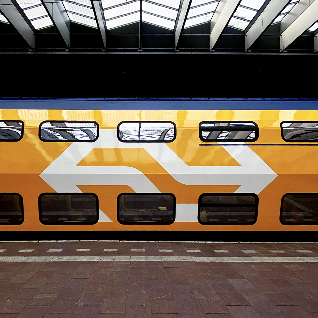 荷蘭鐵路有大量的接觸點(diǎn)和復(fù)雜的治理挑戰(zhàn)。在某種程度上,我們專注于簡化品牌形象設(shè)計(jì)和執(zhí)行,將身份帶回其核心。接下來,我們將“流程”作為一個(gè)新元素引入。流動(dòng)為身份增添了圓潤、溫暖和運(yùn)動(dòng)的有機(jī)效果。顯然,火車是客戶旅程中最關(guān)鍵的部分。 Studio Dumbar 為火車創(chuàng)造了一個(gè)新的設(shè)計(jì)。該設(shè)計(jì)融合了流動(dòng)的理念,使標(biāo)志更加突出和自豪,使火車看起來更現(xiàn)代、更快捷。雖然目前每種類型的列車看起來都不同,但從長遠(yuǎn)來看,荷蘭鐵路的所有列車都將采用新設(shè)計(jì)