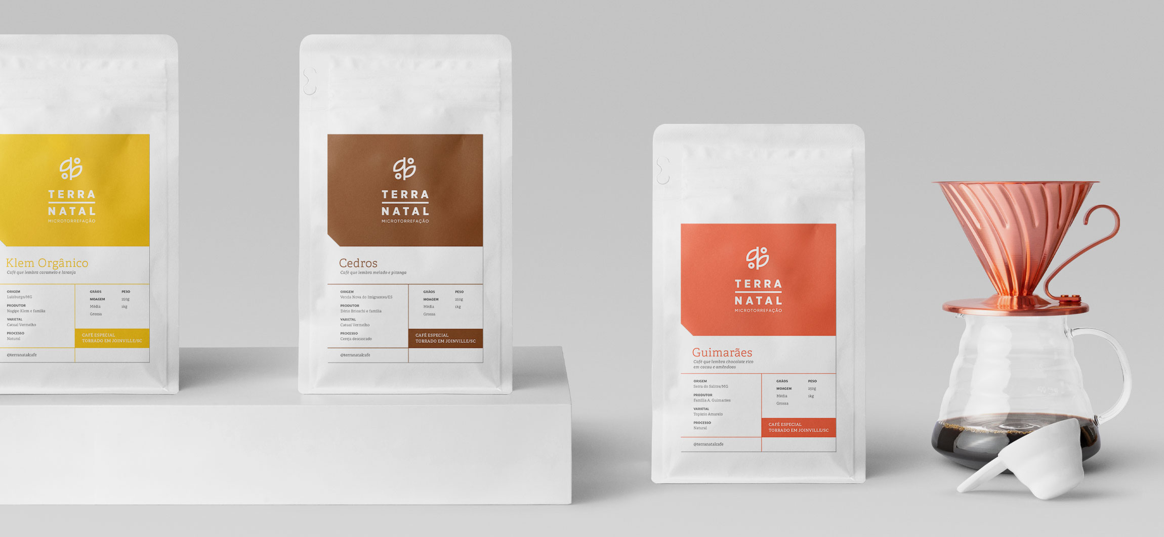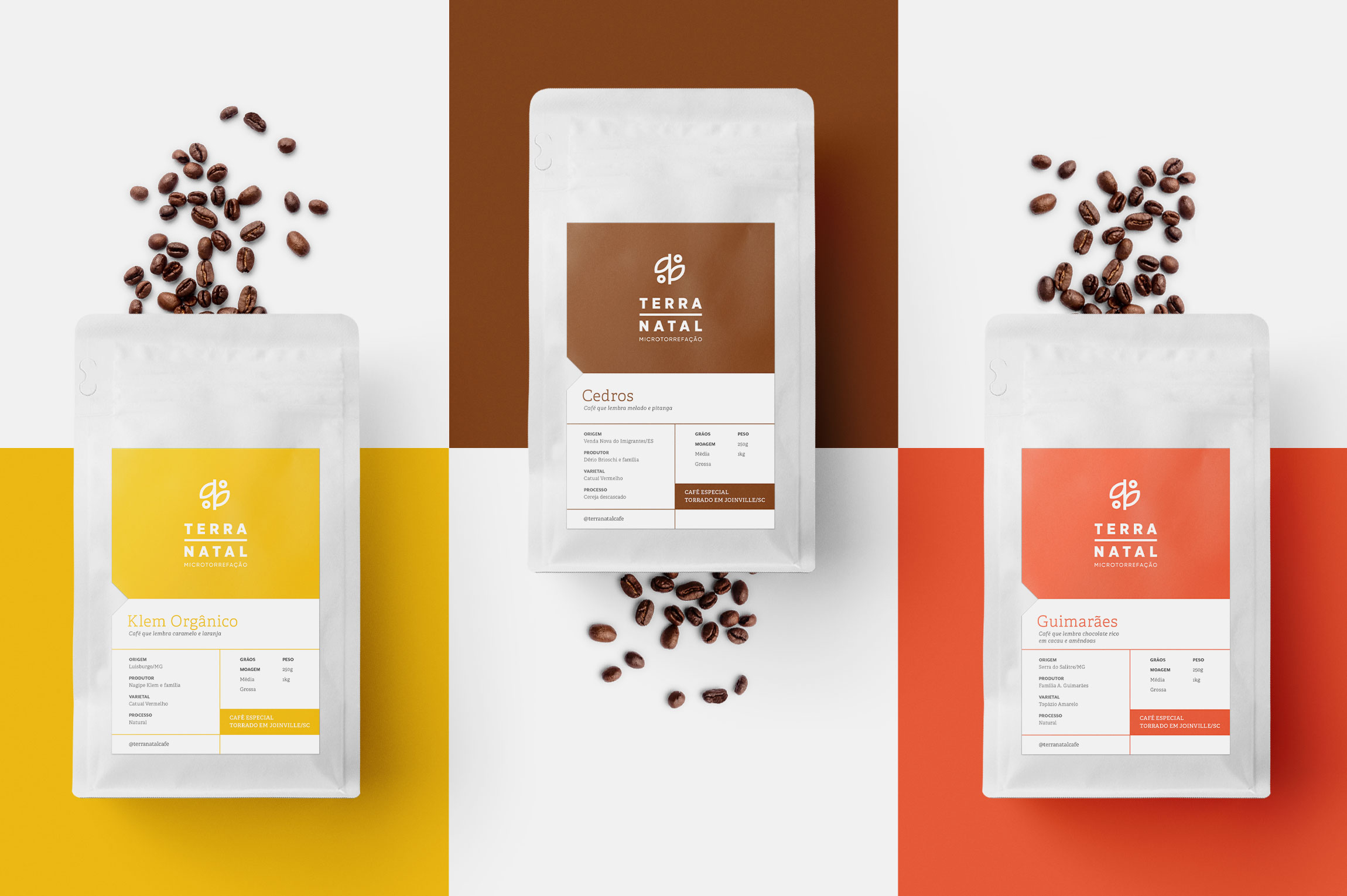 Terra Natal Coffee Roasters 特殊咖啡的包裝設計項目專注于對品牌產生更直接的視覺識別,對產品線進行分類,向消費者傳達感官特征并優(yōu)化生產流程。