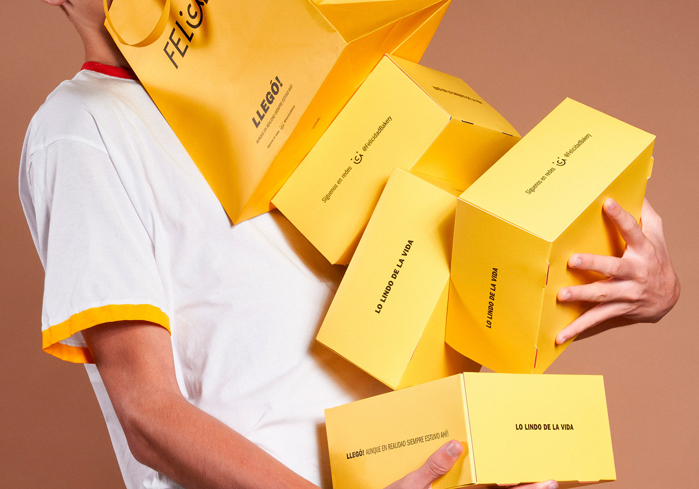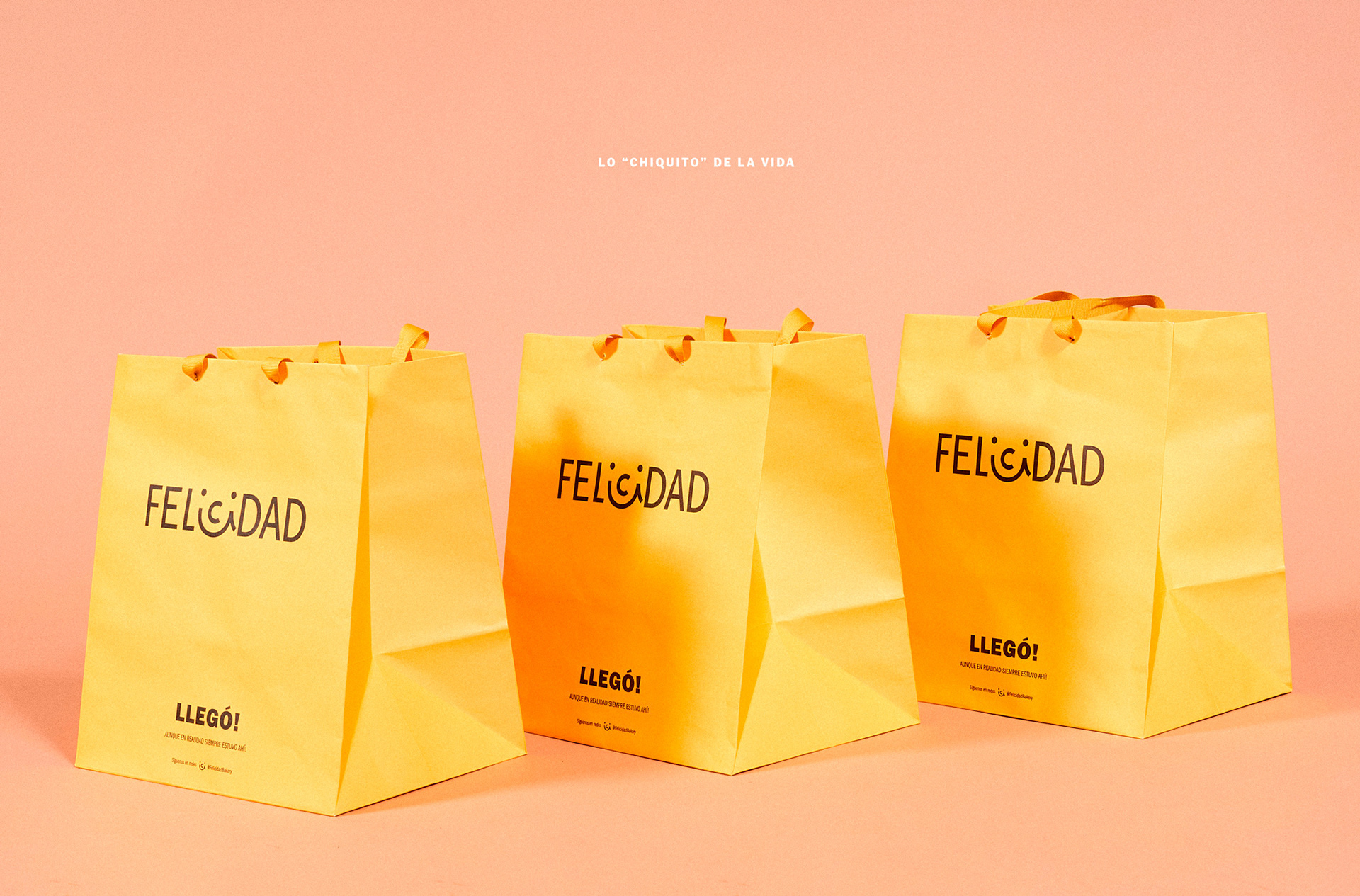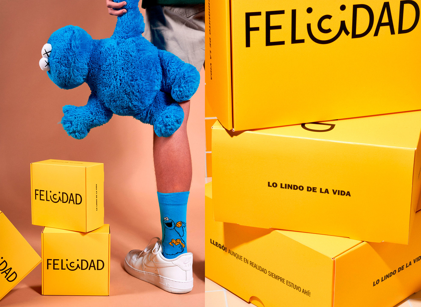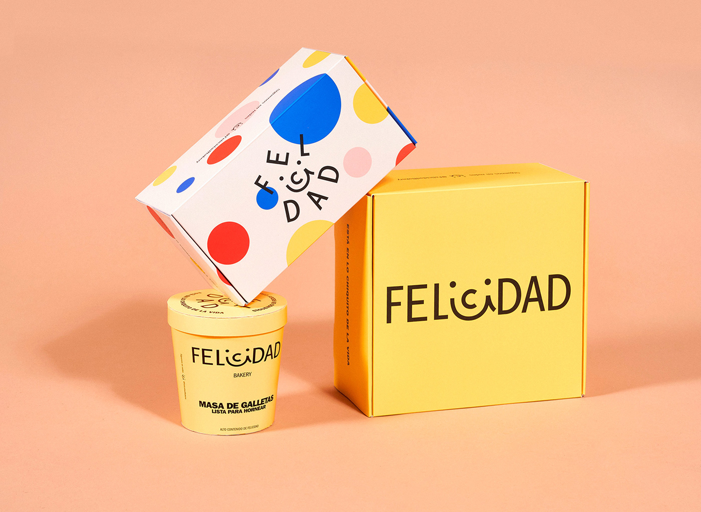 品牌設(shè)計中我們創(chuàng)建了 cookie 包的超級符號,其中包含一系列讓人們開心的事情。創(chuàng)作過程的秘訣結(jié)合了一點(diǎn)懷舊、大量的原色和一些童年記憶的烘焙。因此,F(xiàn)elicidad 的品牌標(biāo)識具有傳染性,就像幸福一樣。