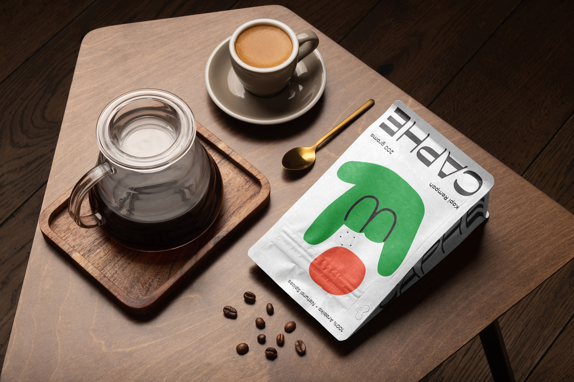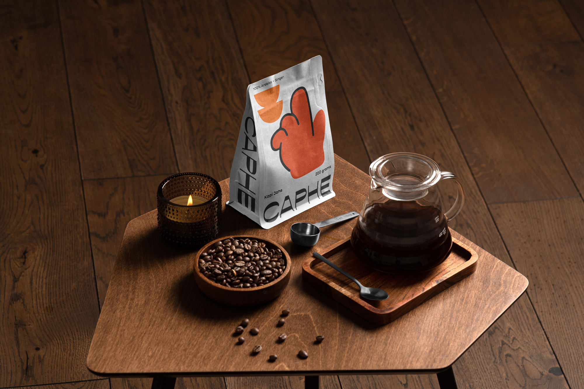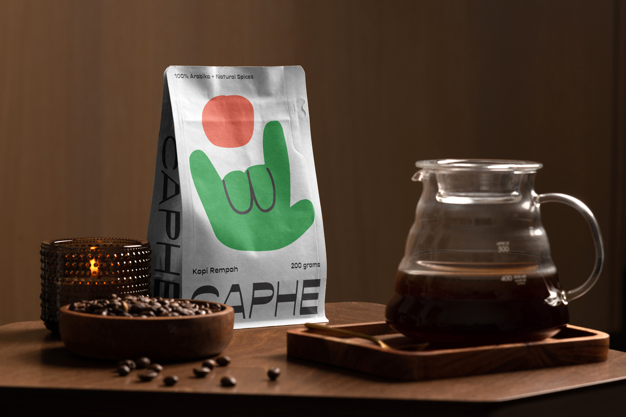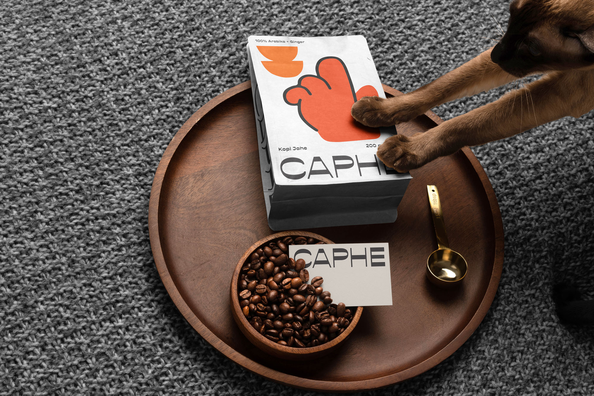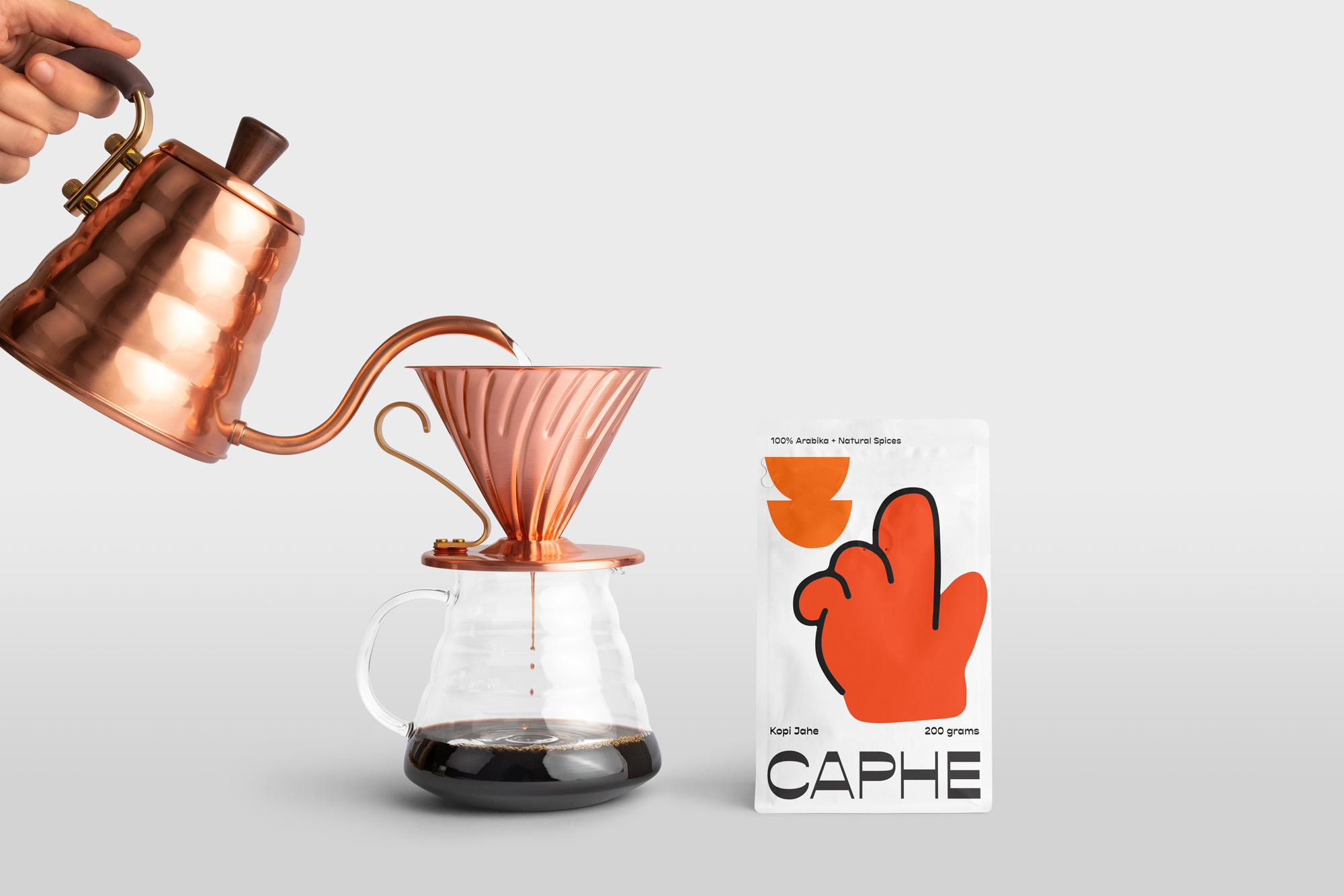 我們選擇Opposit作為Caphe的字體,這種字體是獨(dú)一無(wú)二的,字母的每個(gè)字符上都有粗而細(xì)的筆畫(huà)。在包裝設(shè)計(jì)中,我們?cè)噲D拋開(kāi)以咖啡為基礎(chǔ)的包裝設(shè)計(jì)思想。與大多數(shù)咖啡設(shè)計(jì)不同,姜汁咖啡自動(dòng)地以姜汁插圖為特色,這太普通和無(wú)聊了。我們?cè)O(shè)計(jì)了一個(gè)手勢(shì)的插圖,作為享受咖啡的滿足感的標(biāo)志。除了是包裝上的一個(gè)身份和設(shè)計(jì),這個(gè)插圖也是一個(gè)附屬于品牌的圖像。它與眾不同,獨(dú)一無(wú)二,引人注目。