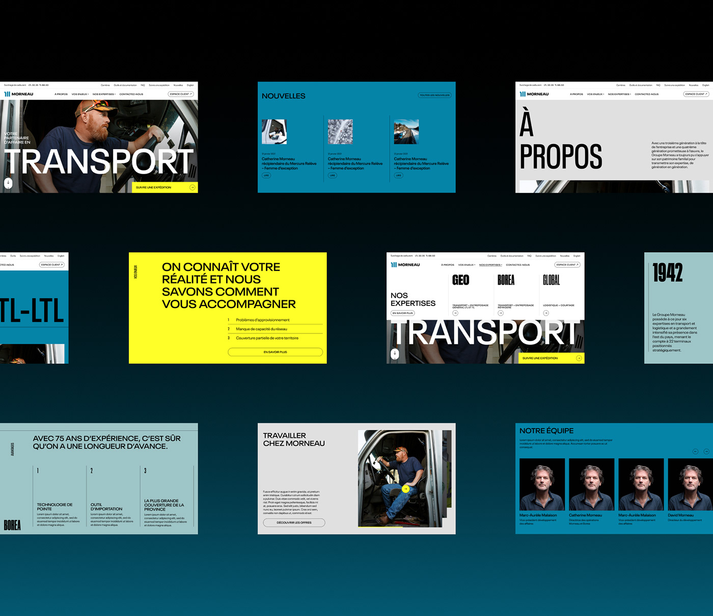 (恩)Groupe Morneau是一個(gè)家族的故事,這個(gè)家族在四代之內(nèi)建立了加拿大東部最大的運(yùn)輸公司之一。品牌本質(zhì)必須得到界定和鞏固,以使Groupe Morneau在市場(chǎng)上與眾不同。