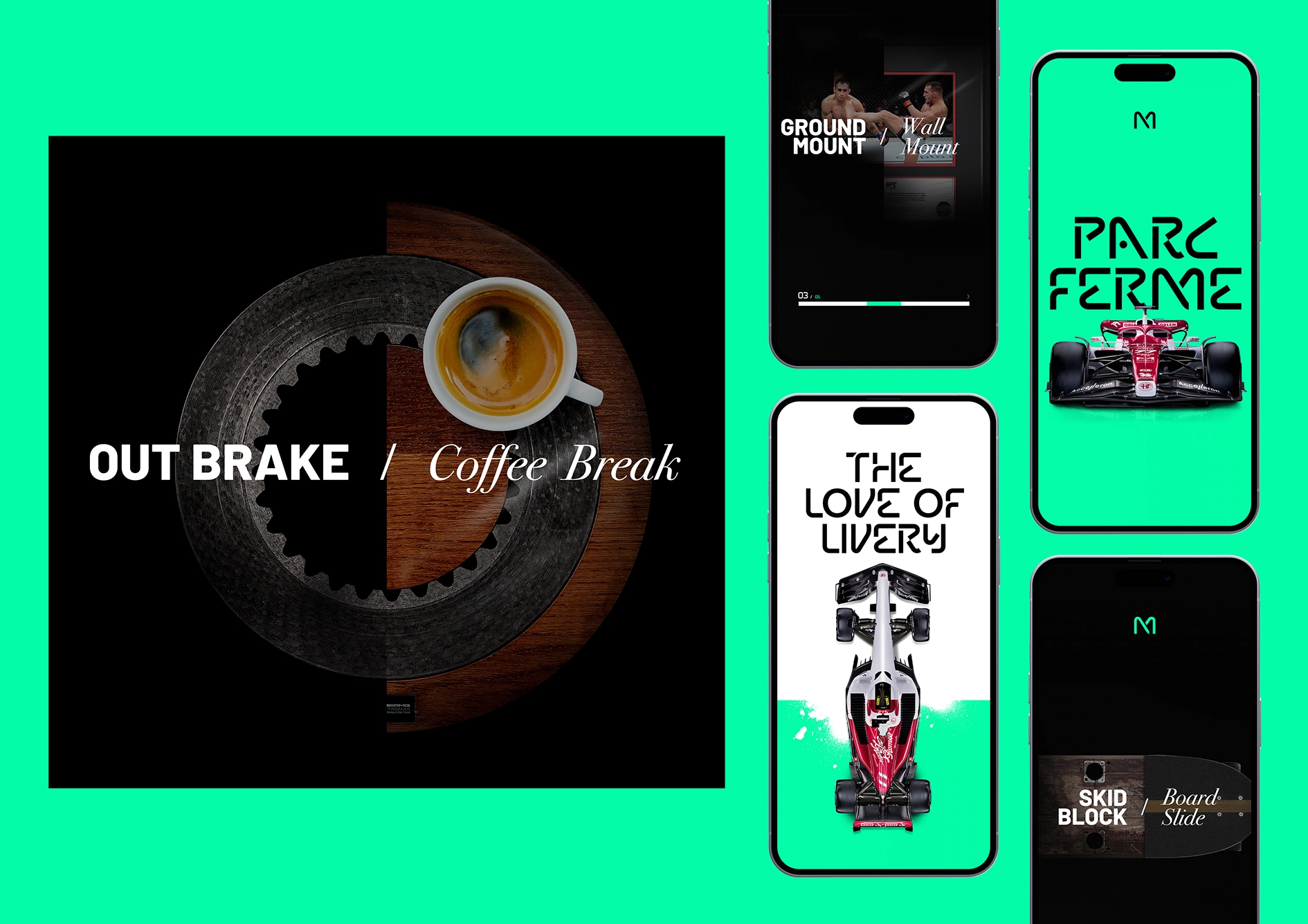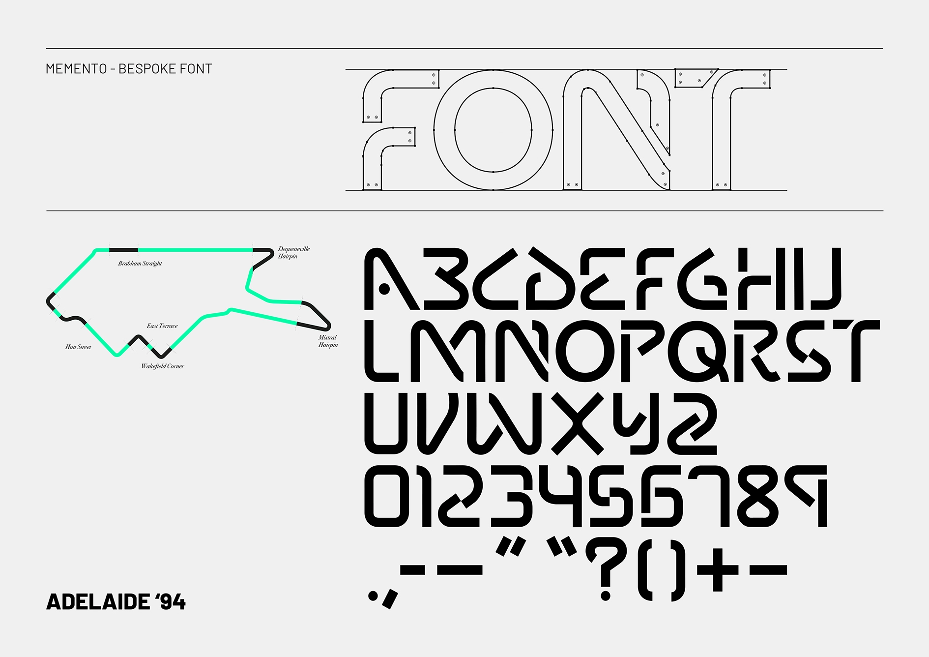 采用了標志性的賽道及其著名的彎道和直道,為Memento創(chuàng)造了一個定制的字母組合和字體,它提供了一種運動和動作感,而不是將自己與F1單獨聯(lián)系在一起,而是具有運動本身提供的精度和工藝水平。字體中的每個字母和字符都從阿德萊德軌道上剪下來,重新用作反映品牌所做的事情的字體結(jié)構(gòu),精確定位和重新定位以制作品牌的每個元素。