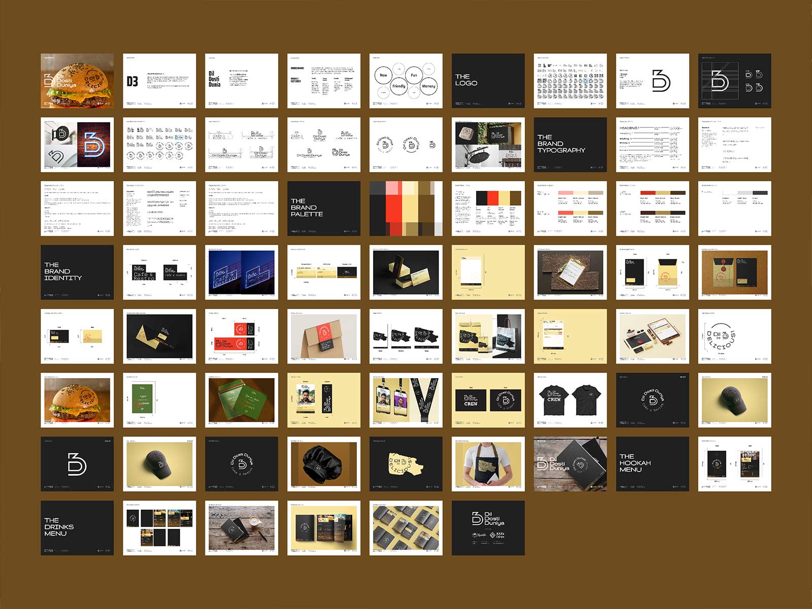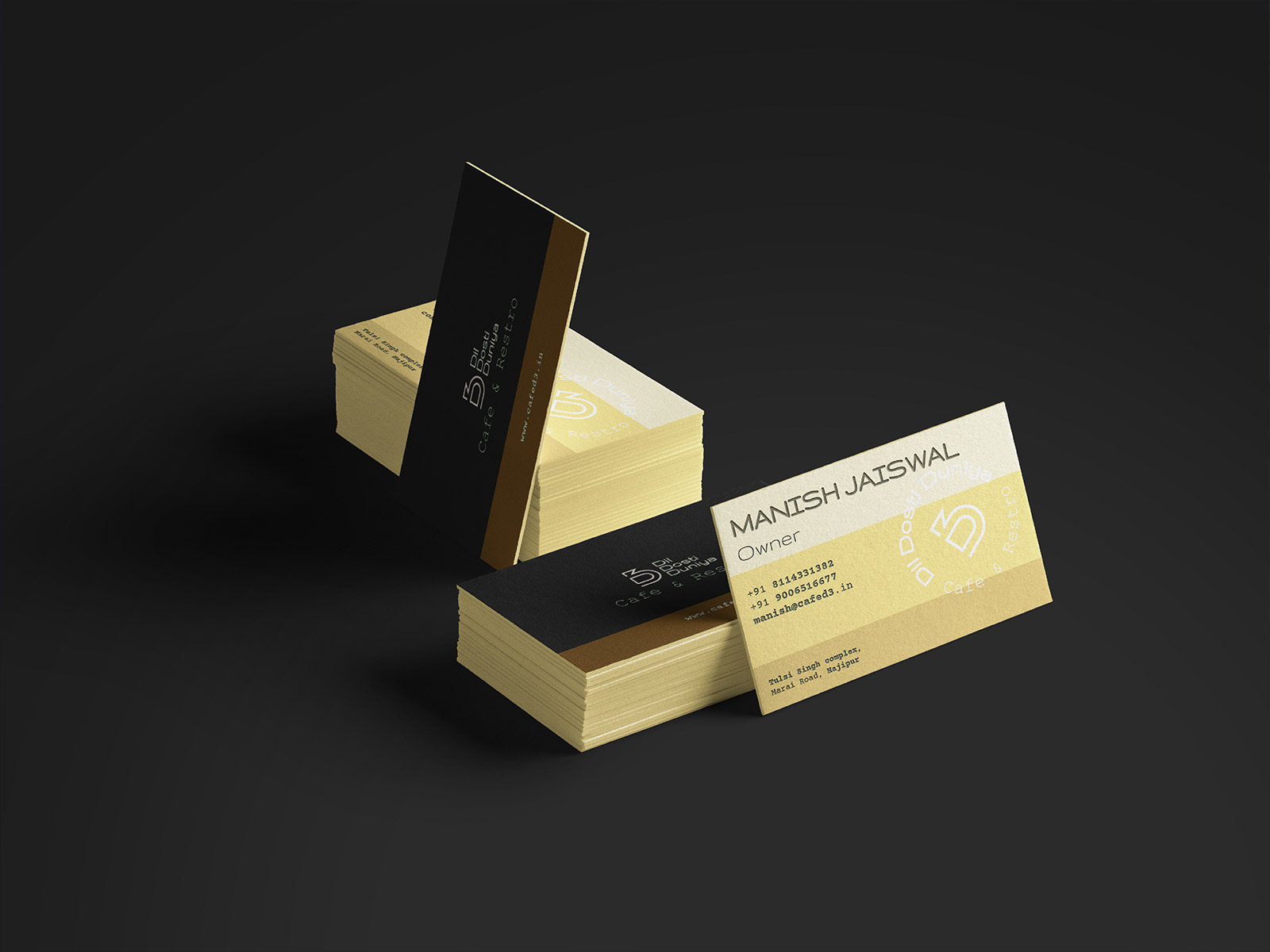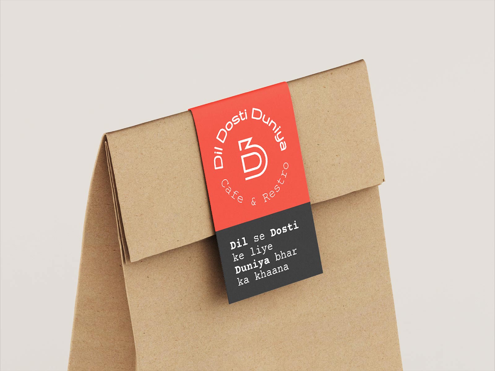 對于將大量印刷的文具,如信箋抬頭和發(fā)票,我們保留白色作為基色。對于名片、信封和邀請函等單幅印刷文具,我們使用 D 黑色和不同色調(diào)的 Dosti 黃色和 Duniya Brown 作為基色的組合。我們采用浮雕印刷技術(shù),結(jié)合紅色徽標印章,提供手工制作的精致用餐體驗。我們進一步使用不同色調(diào)的Dosti Yellow對不同的信息進行分組,同時為文具提供標志性的視覺品牌標識。