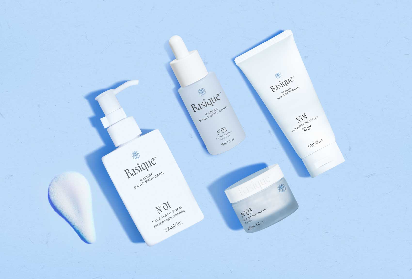 為Basic創(chuàng)建一個(gè)品牌和視覺(jué)識(shí)別和包裝,突出品牌的關(guān)鍵點(diǎn),即它是護(hù)膚界初學(xué)者的護(hù)膚品,采用干凈簡(jiǎn)約的設(shè)計(jì),指的是其不含硫酸鹽和香水的天然產(chǎn)品。