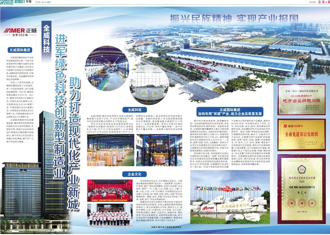 正威國際集團(tuán)是由產(chǎn)業(yè)經(jīng)濟(jì)發(fā)展起來的一家以新一代電子信息和新材料完整產(chǎn)業(yè)鏈為主導(dǎo)的高科技產(chǎn)業(yè)集團(tuán),近年來大力發(fā)展產(chǎn)業(yè)投資與科技智慧園區(qū)開發(fā)、戰(zhàn)略投資與財(cái)務(wù)投資、交易平臺(tái)等業(yè)務(wù)。2021年,集團(tuán)實(shí)現(xiàn)營業(yè)額近7200億元,位列2022年世界500強(qiáng)第76名 、中國企業(yè)500強(qiáng)第25名 、中國民營企業(yè)500強(qiáng)第4名 、中國制造業(yè)企業(yè)500強(qiáng)第6名、中國制造業(yè)民營企業(yè)500強(qiáng)第2名